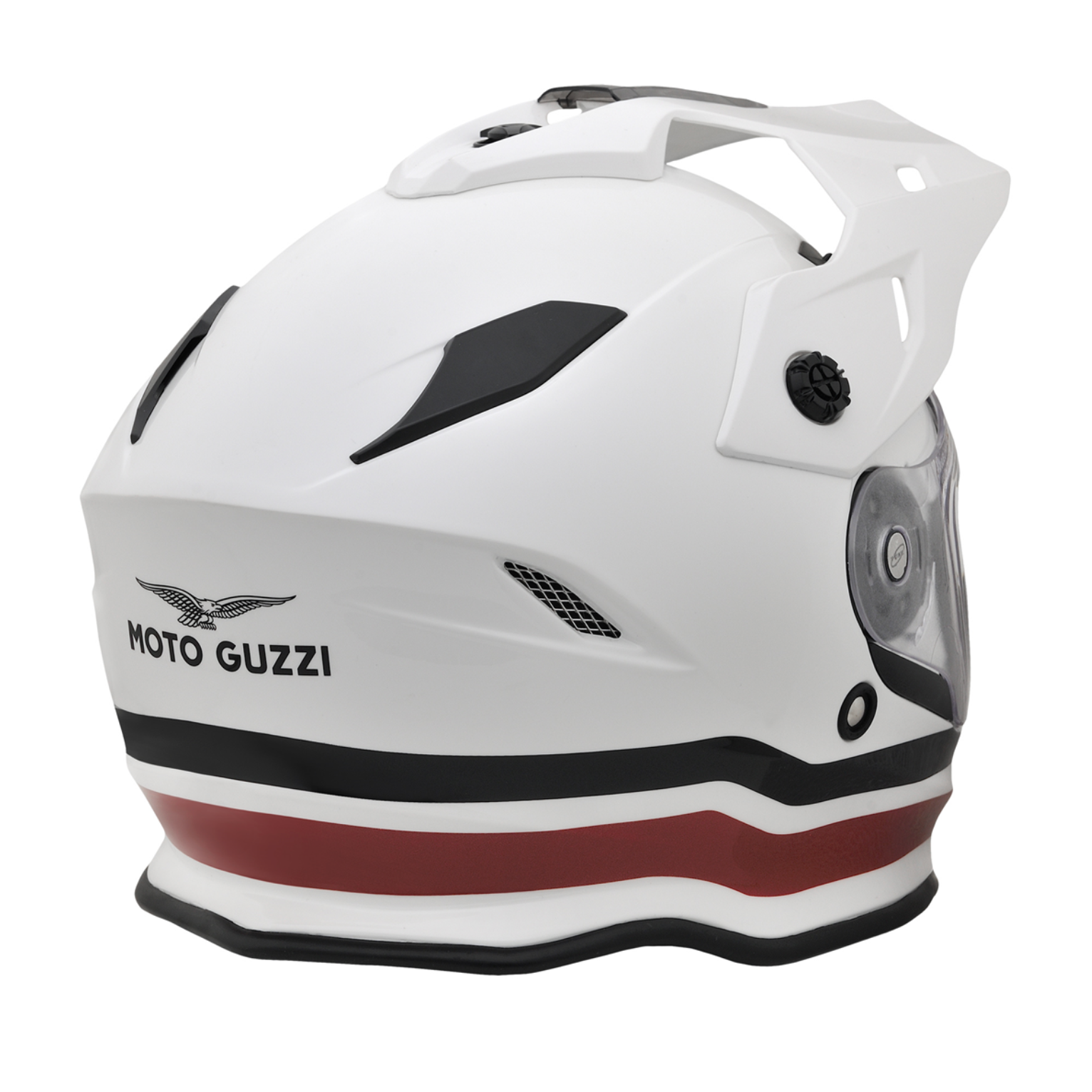 Ce casque de moto intégral combine technologie de sécurité avancée et design premium Moto Guzzi. Doté d’un système d’extraction d’urgence J.1.E.R., d’un double écran et d’une fermeture Double D, il répond aux exigences des motards les plus pointus.